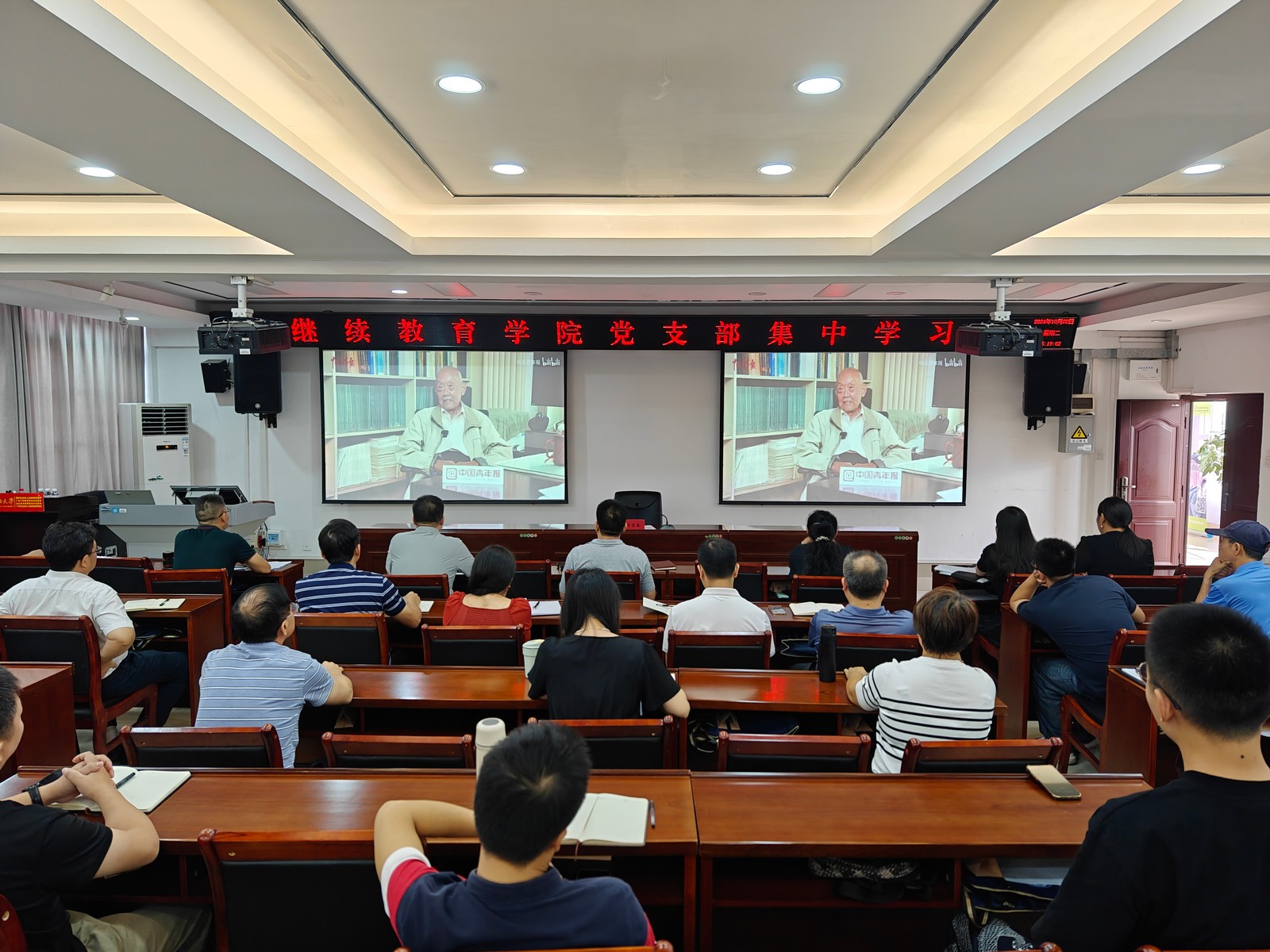 会上,闭富春带领全体党员学习习近平总书记在全国教育大会上的重要讲话精神,观看时代楷模杨士莪院士的先进事迹视频。与会党员同志围绕杨士莪院士先进事迹,结合个人学习工作实践,分享专题学习心得体会。