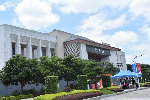 就餐完毕,研学队伍来到了广西大学大礼堂。大礼堂建于1954年,原名为广西育才学校大礼堂,是广西大学历史最悠久的现代建筑。广西大学大礼堂位于西大西校园的中轴线上,是藏在校园中的古典法式建筑,气宇轩昂。正门采用科林斯式的古典廊柱,端庄大气的风格彰显西大人的严谨细致。这座有着60多年历史的大礼堂,就像一位无言的师长一样,见证一批批学子们告别母校、扬帆起航、走向更为广阔的天地。