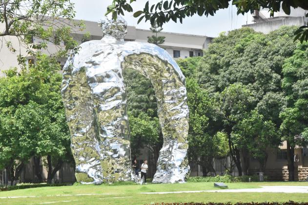 队伍一路前行,经过了汇学堂、西校园体育馆,来到了广西大学图书馆。经过图书馆门口时,同学们看到时光广场的“时光之门”纷纷感叹设计师的巧夺天工。