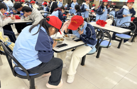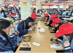 初入校园,开启知识探索之旅 同学们抵达广西大学后,研学活动正式开启。全体人员前往北苑餐厅用餐。在研学导师的组织下,同学们有序排队进入餐厅,安静就餐。用餐期间,大家遵守秩序,文明有礼,展现出良好的素养。这次在大学食堂的用餐经历让同学们对大学生活多了一份期待。