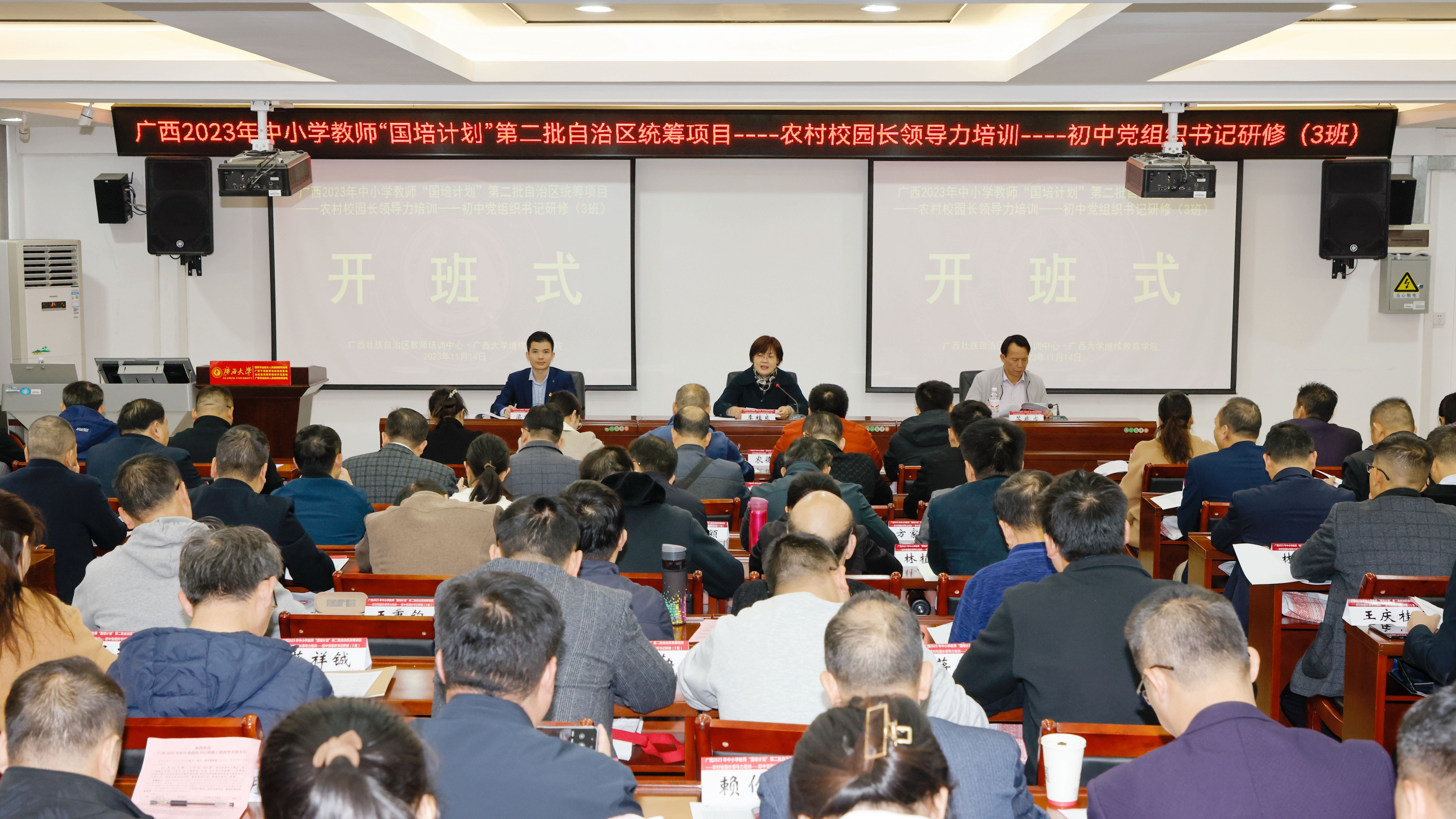 11月14日上午,由广西壮族自治区教师培训中心主办,米兰体育承办的“广西2023年农村校园长领导力培训——中小学党组织书记研修(初中党组织书记3班)”开班仪式在我校举行。广西壮族自治区教师培训中心主任李桂良、米兰体育院长苏兆成出席仪式,来自广西14个市的110名中学党组织书记、党务骨干参加仪式。