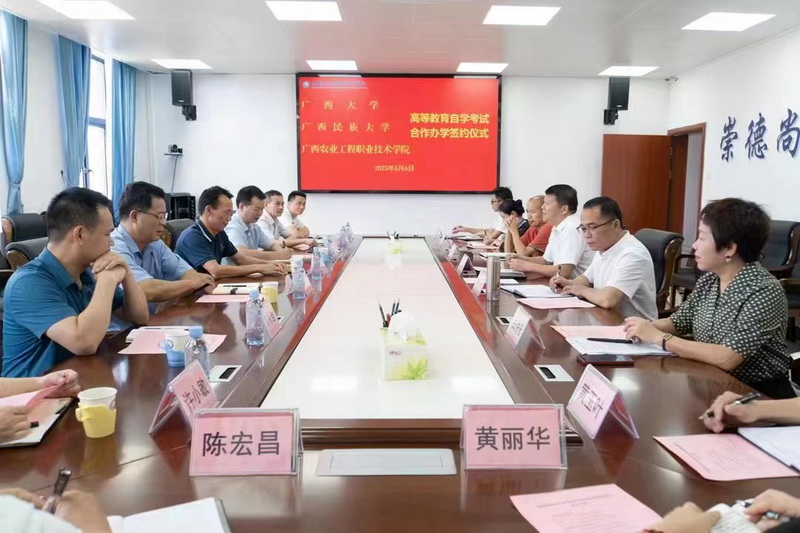 为进一步扩大我院的自考办学,我院自考中心于6月6日与广西农业工程职业技术学院签订自学考试合作办学协议。