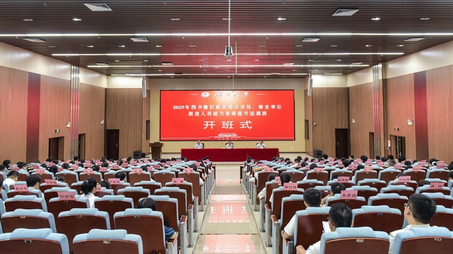 9月24日,2025年西乡塘区新录用公务员、事业单位新进人员能力素质提升培训班在我校开班。中共南宁市西乡塘区委常委、组织部部长李君出席开班式并作动员讲话,中共广西大学委员会组织部副部长陈世扬出席开班式并致辞,米兰体育副院长徐华主持开班式。
