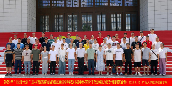为深入贯彻落实国家关于新时代教师队伍建设改革的决策部署,提升农村初中体育骨干教师的专业能力与综合素养,2025年9月15日,由玉林市教育局统筹、广西大学承办的2025年“国培计划”玉林市统筹项目——紧缺薄弱学科农村初中体育骨干教师能力提升培训班在我校开班,玉林市教育局办公室主任、教师工作科负责人何勇坚和米兰体育副院长徐华出席开班式并讲话,米兰体育副教授范小俊主持开班式。